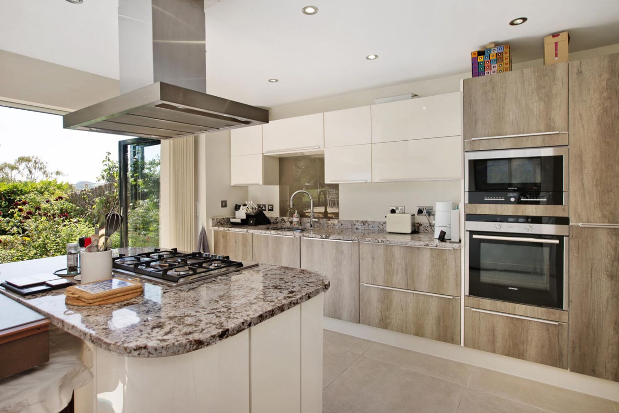 Externally appealing, Greenlea has stone and rendered elevations with cantilevered roof sections and powder coated facias, double glazed windows, doors and bi-folds set beneath stepped roof sections.