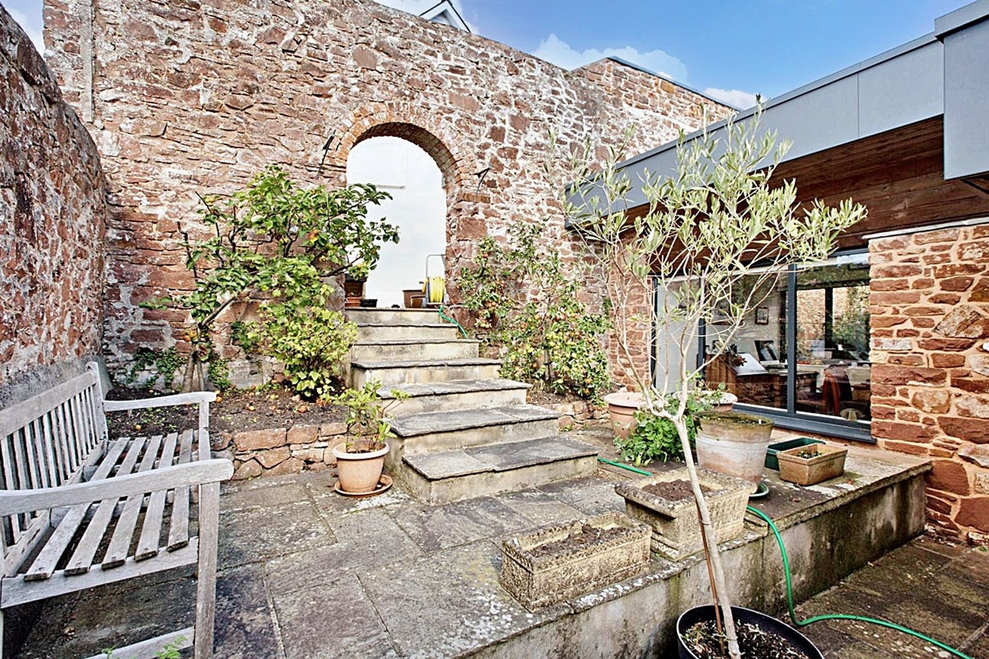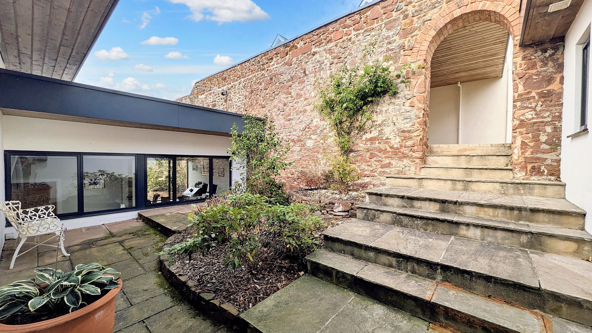 The entrance courtyard is a lovely space, being terraced, enclosed and laid to Indian sandstone paving.