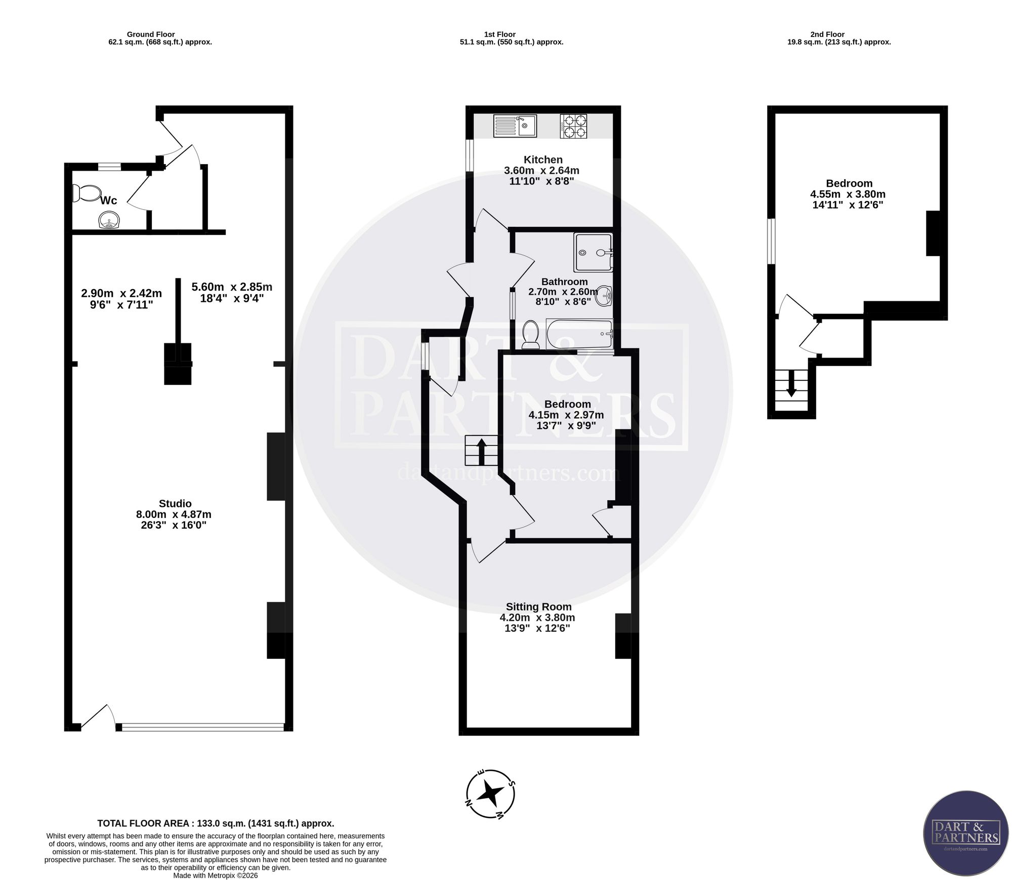 To the rear there is a KITCHENETTE and CLOAKROOM/WC.