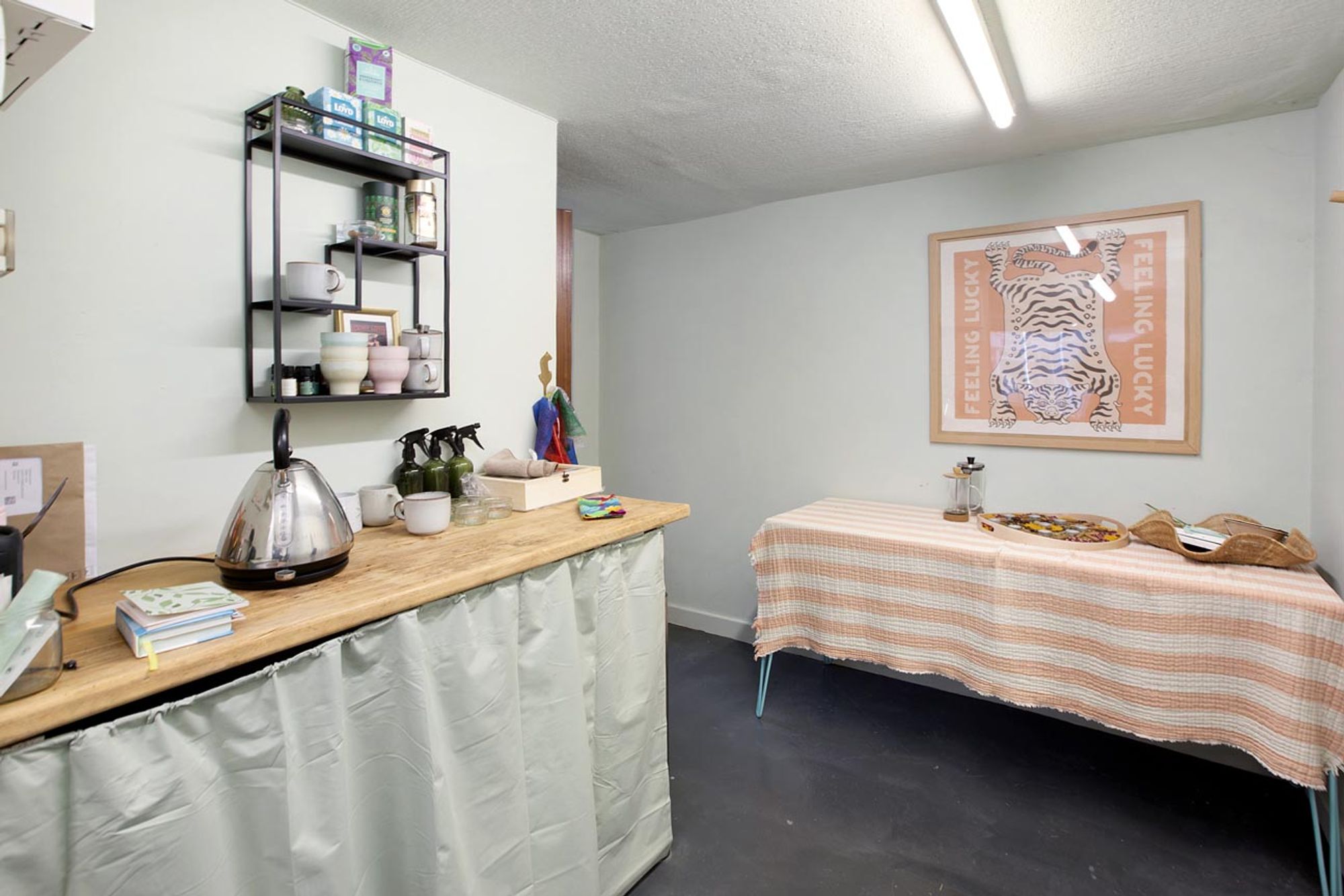 The rear of the shop has been divided into versatile areas.