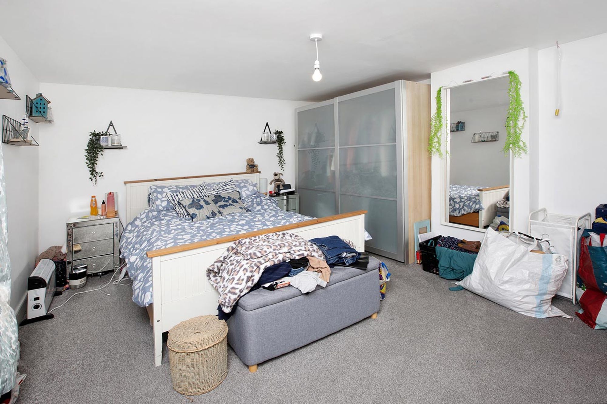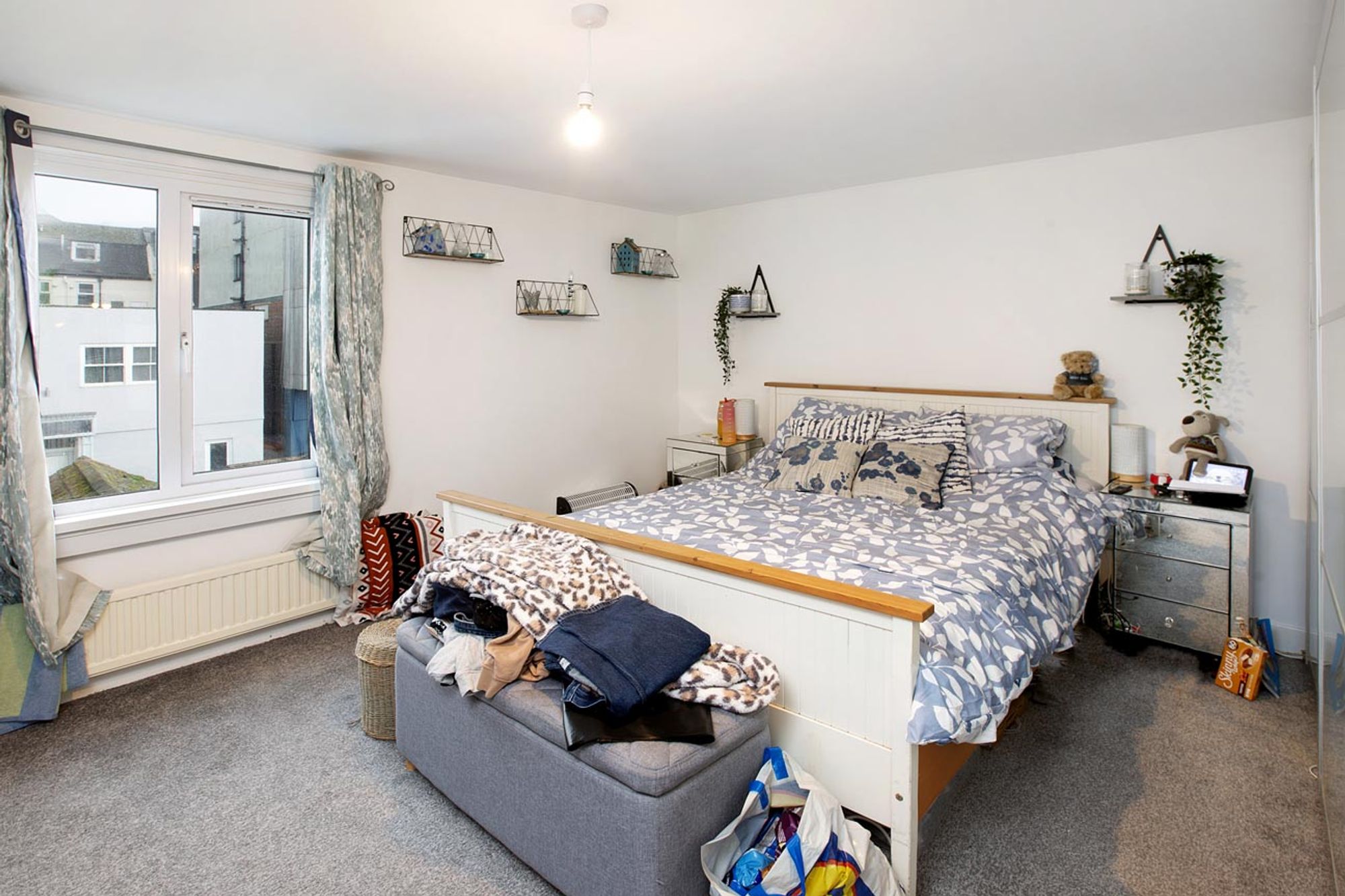 uPVC double glazed window. Radiator. Door to built in wardrobe with hanging rail and fitted shelving.